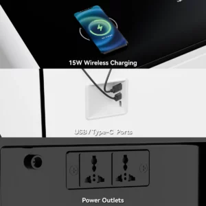 Keep your devices charged effortlessly with the wireless charging module, eliminating cable clutter and ensuring that your gadgets are always ready to use.