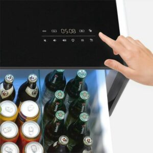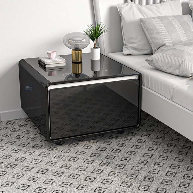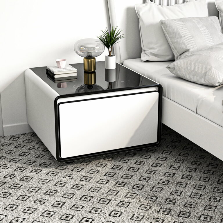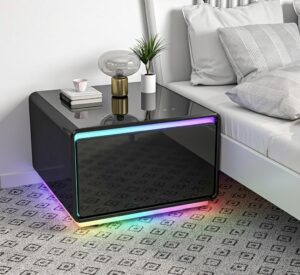 Engage with the enchantment of sensor-activated illumination adorning this refined coffee table. The built-in lighting beneath the mini fridge nightstand for bedroom awakens as your presence draws near, gently dimming upon withdrawal. Navigate the realm of personalized ambiance through a touch-sensitive panel, effortlessly toggling the night light’s essence and selecting from three enchanting levels of adjustable luminosity via the tabletop touchpad.