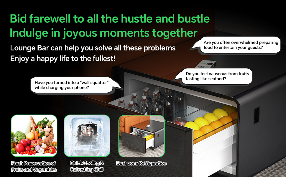 Stay refreshed at home with the coffee table’s built-in fridge, providing easy access to drinks, FRUITS & MORE while saving space and enhancing convenience for entertaining guests.