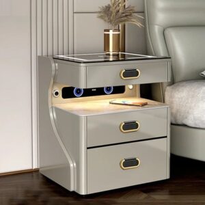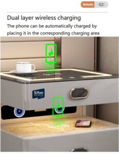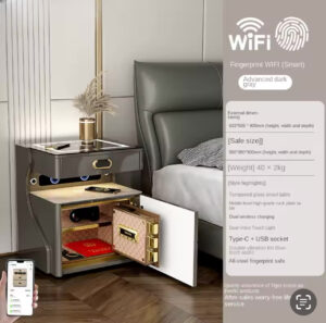 Say Hello to Multifunctional Smart Bedside Table with HIDDEN Fingerprint Fireproof Safe, Perfect for Smart Homes and Executive Offices.